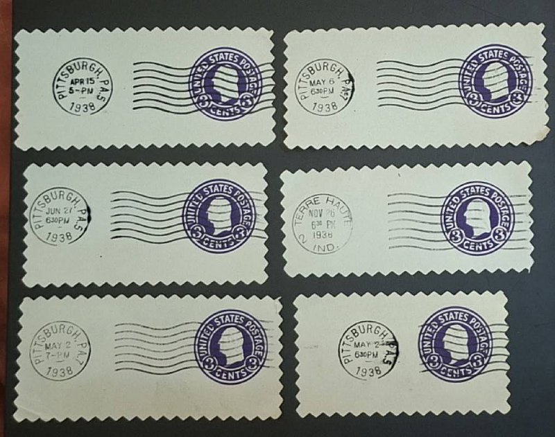 ■ 早期收藏 • 老集郵家託售..... 美國郵資封,戳記為 1938年,近百年了,斷片六片..... ((( 每組六片 • $680元 ))) 剩幾組 ....