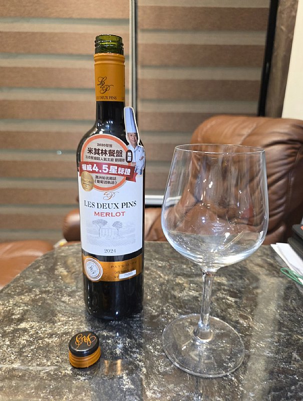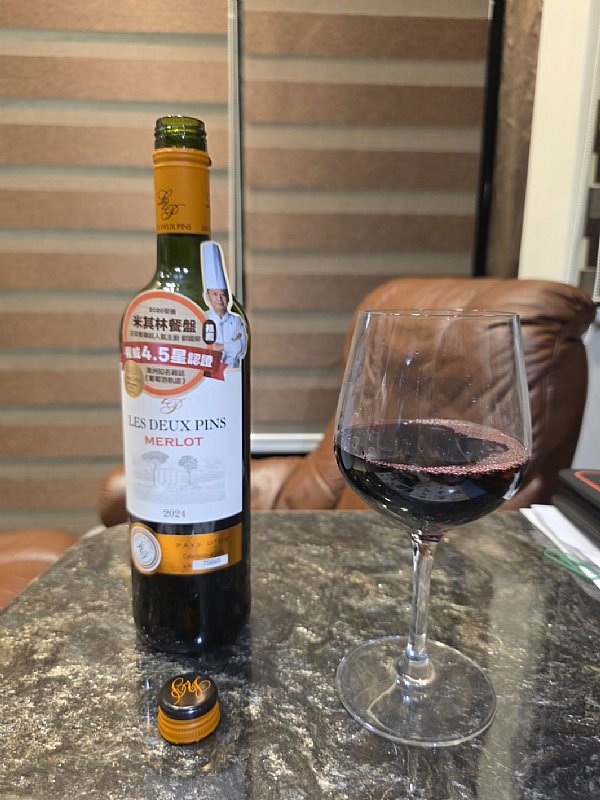 這瓶紅酒,說真的,在台灣的餐酒界算是個「巷仔內」的好物。光看酒標上那兩棵松樹,就知道它是南法 IGP 奧克地區(Pays d'Oc)來的,那個專出高 CP 值餐酒的地方。更狂的是,它還請到台中法森餐廳的米其林餐盤主廚劉國卿來站台推薦!