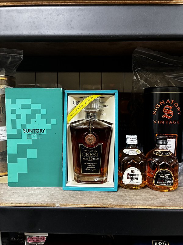 1-三得利金花Crest12年有盒+黑半角(金花)+白半角(雙獅):2500含貓到家