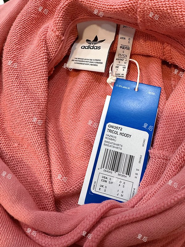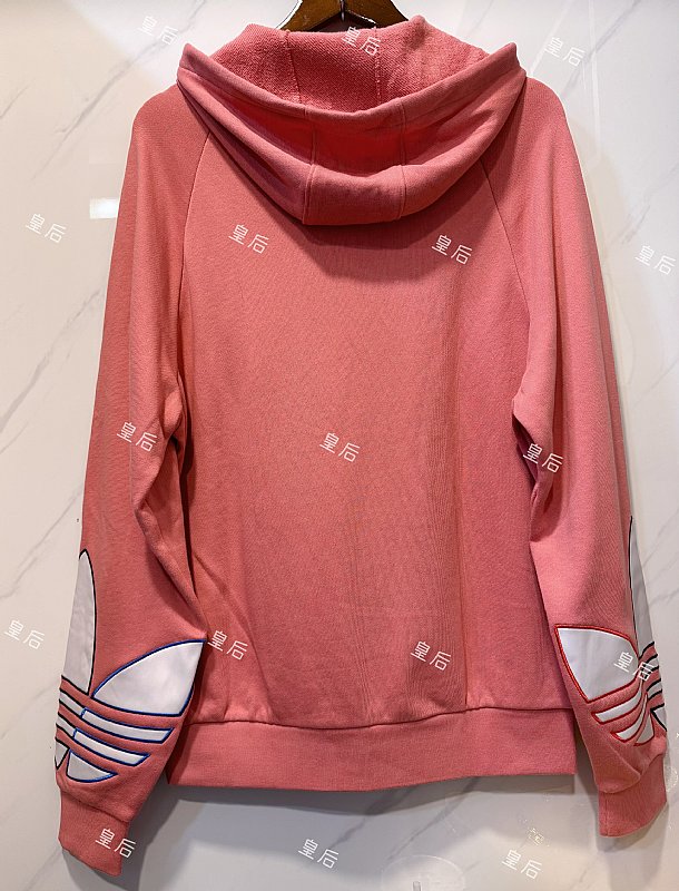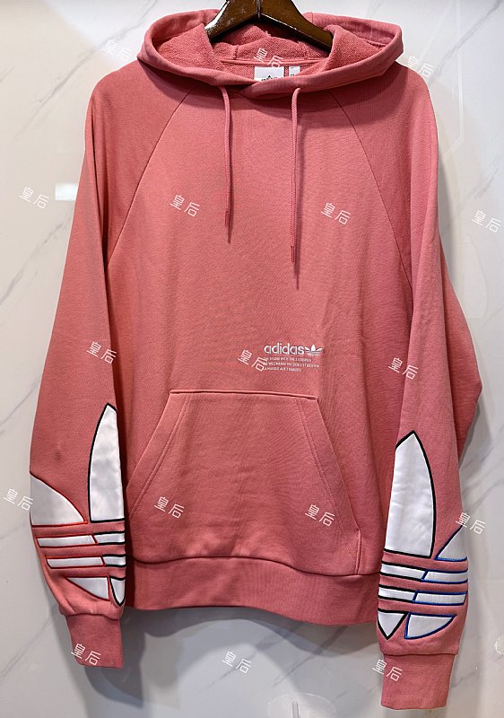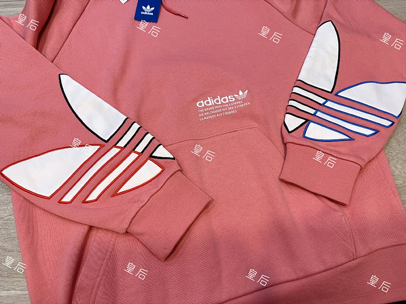 全新~正品Adidas 三色三葉草帽T 毛巾布內層 玫粉色
