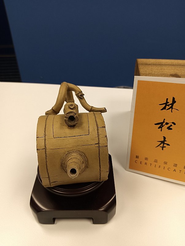 台灣知名陶藝名家 手捏仿生竹節茶壺 (全新讓藏)
