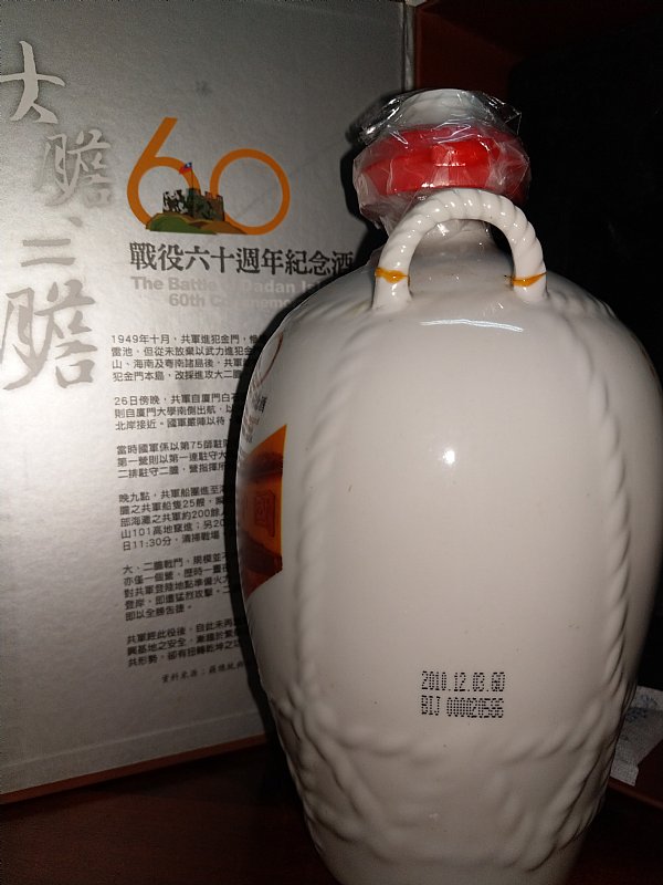 2、99年大膽、二膽酒,因為酒瓶握把的地方有撞壞,後來黏起來了,2600公尺