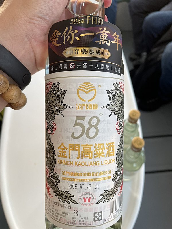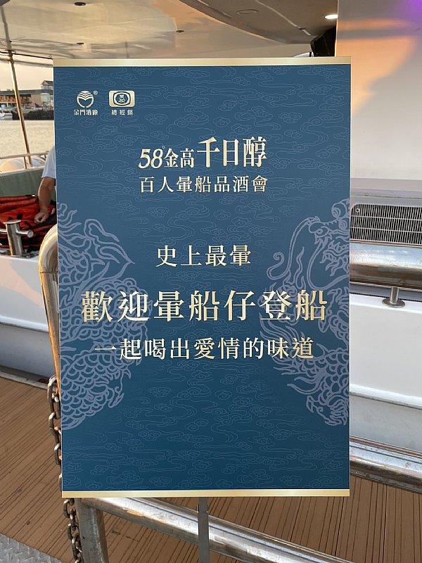 上了船才知道是要喝情歌熟成的金門高粱。