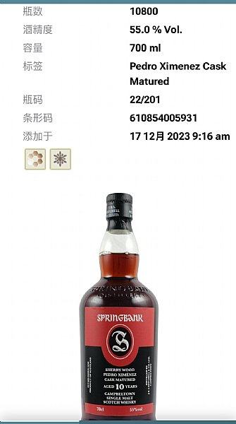 限量原酒強度版,使用西班牙 PX 雪莉桶熟成,帶有濃厚葡萄乾、焦糖與巧克力香氣,甜感豐富、層次飽滿。