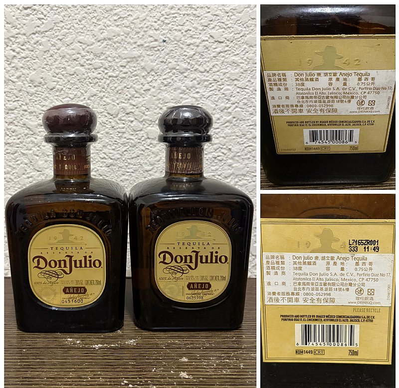 A.唐.胡立歐 ANEJO 龍舌蘭 兩瓶一組跑2300