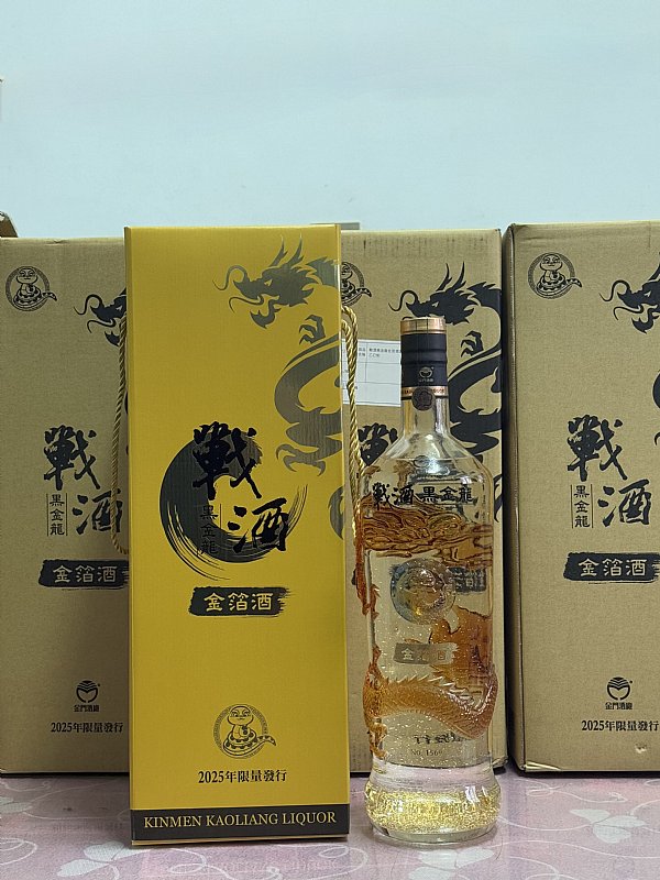 今年,金門酒廠與味丹企業再度攜手隆重發表「戰酒黑金龍3.6L金箔酒-琥珀蟠龍」匠人細工的琥珀色巨龍,盤踞在3.6公升的巨無霸立體酒瓶,盡顯尊榮霸氣這款手速慢點就只能「神龍見首不見尾」的秒殺如此極品一定要搶個兩瓶,一瓶炫耀、一瓶傳世