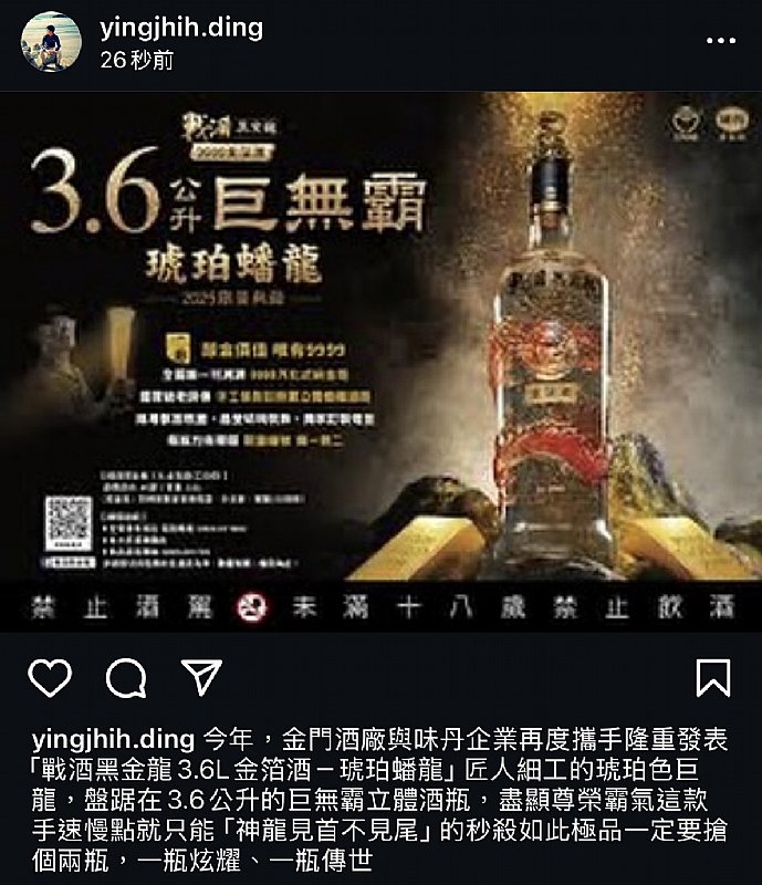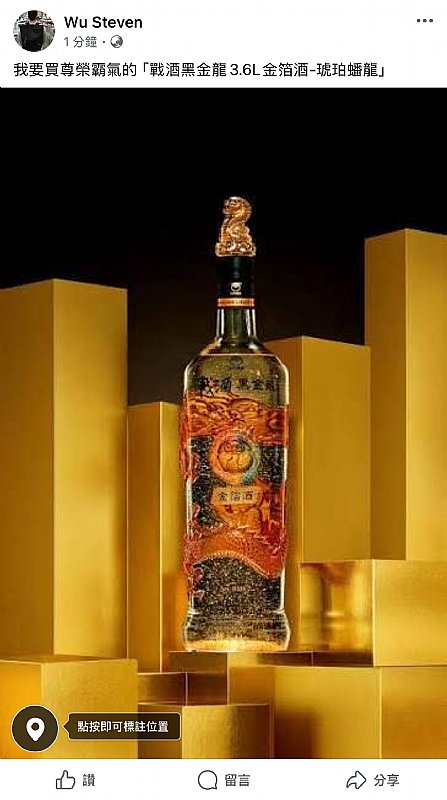 【截圖 在FB或 IG 戰酒黑金龍3.6L金箔酒 發文】