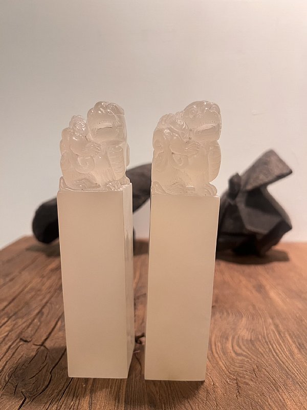 太師少師 壽山石印材一對 , 象徵權勢與富貴