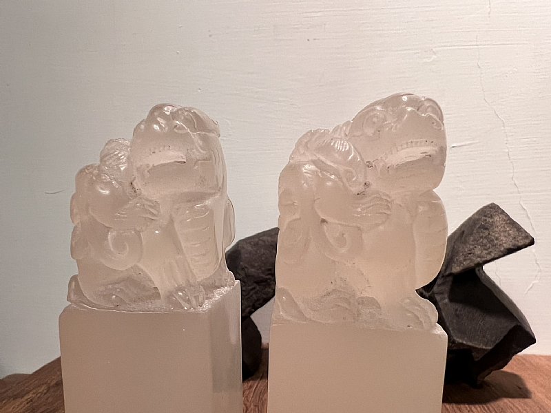太師少師 壽山石印材一對