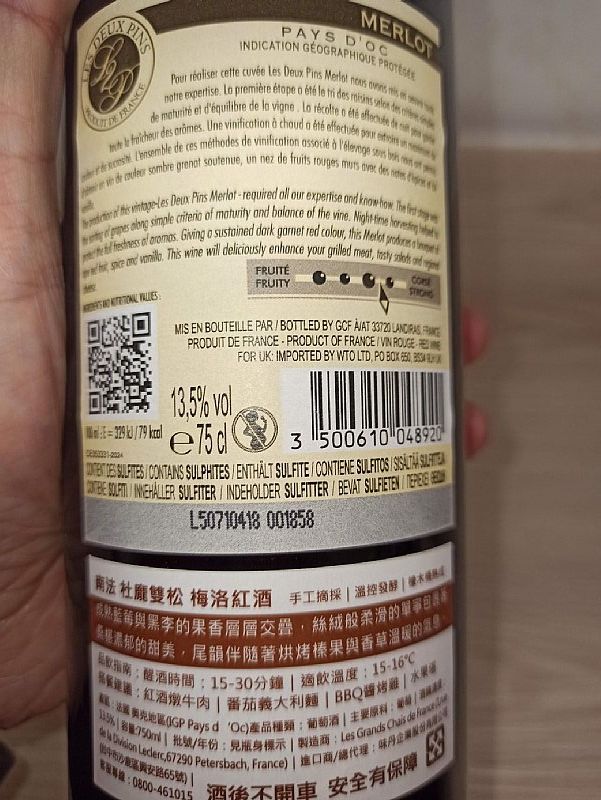 LES DEUX PINS MERLOT 2024南法 杜龐雙松 梅洛紅酒 13.5% 750ml