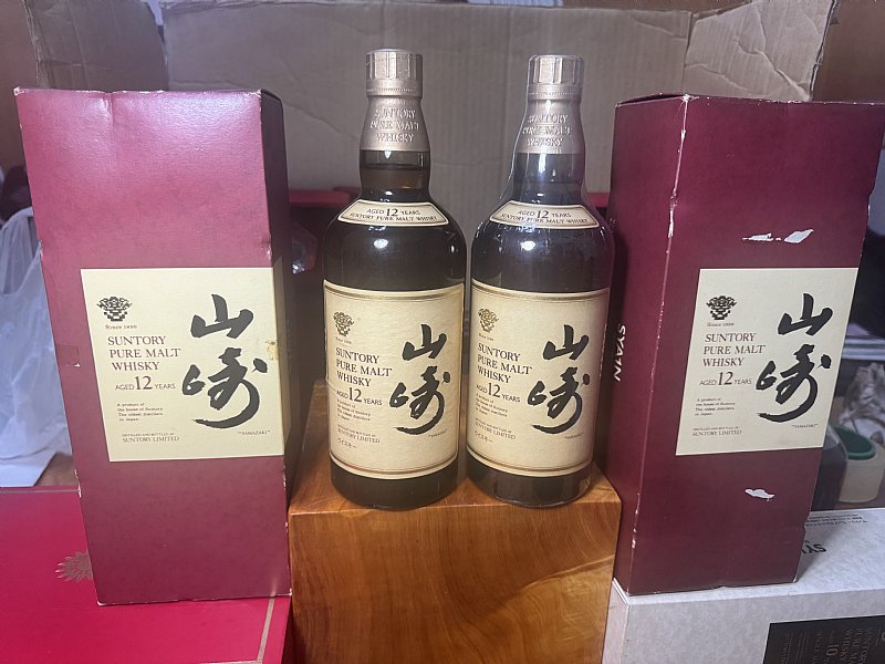 山崎10年綠金花(有盒無小卡片);山崎12年紅盒金花(有盒本無小卡片)~跑出中⋯如圖示