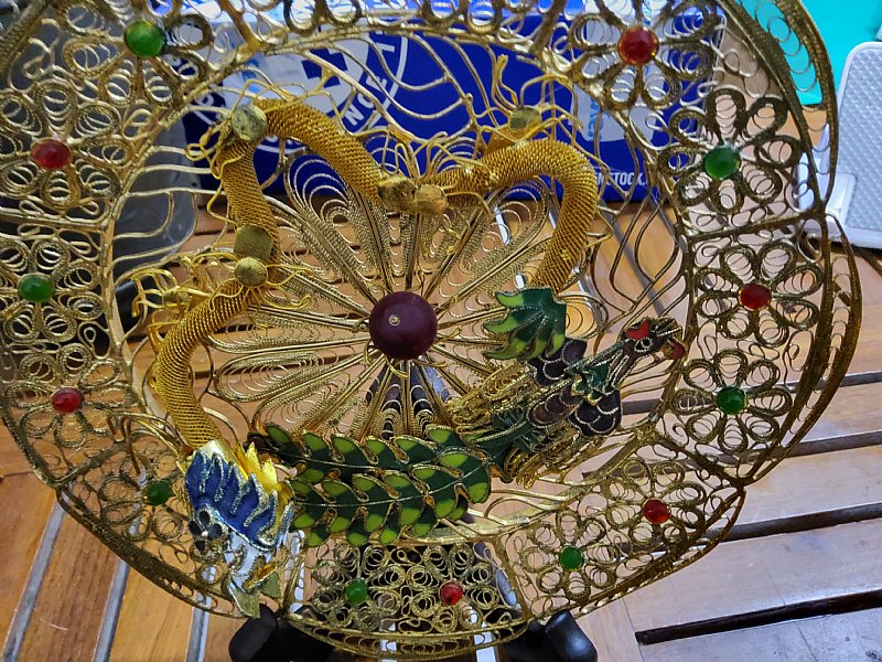 :這類盤飾通常作為室內擺飾使用,因其手工繁複,常見於古董收藏或傳統工藝品市場中。