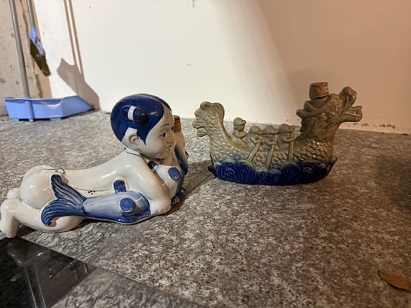 娃娃抱魚裸瓶重1131g,端節裸瓶重1021g,瓶身有歷史痕跡,狀況如照片所示,