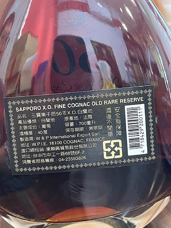 三寶樂50年XO白蘭地 700ml 40% 有證書