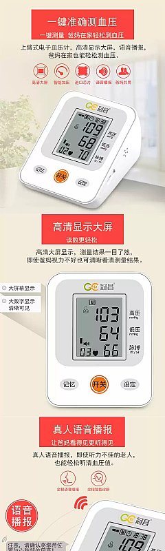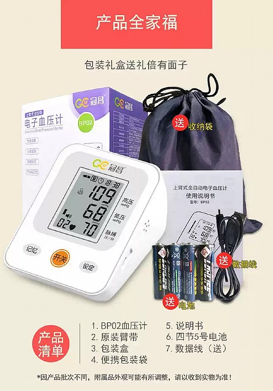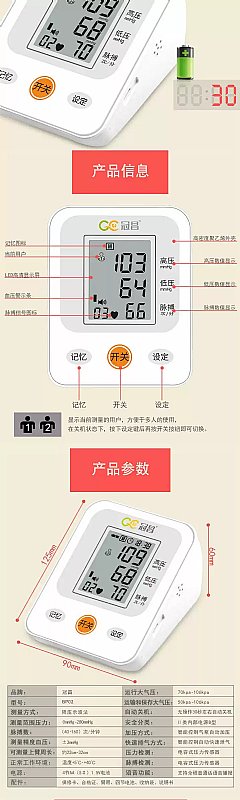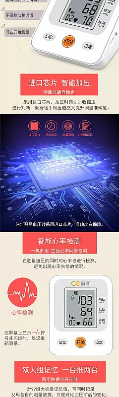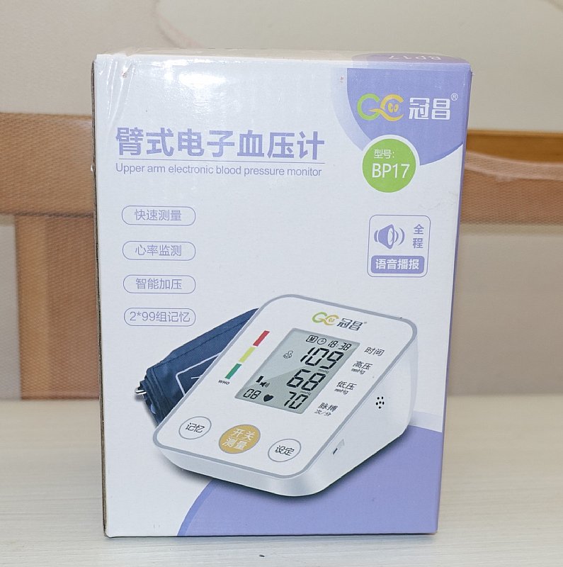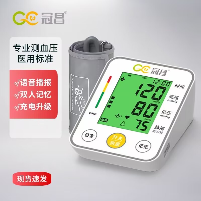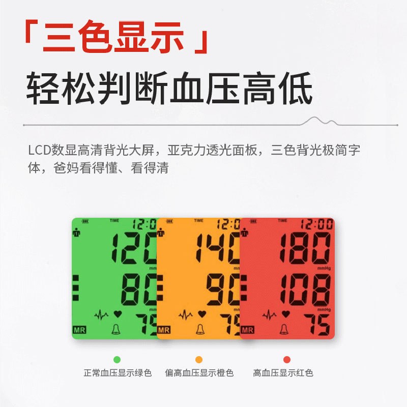 全新家庭智能三色LED顯示臂式血壓測量計