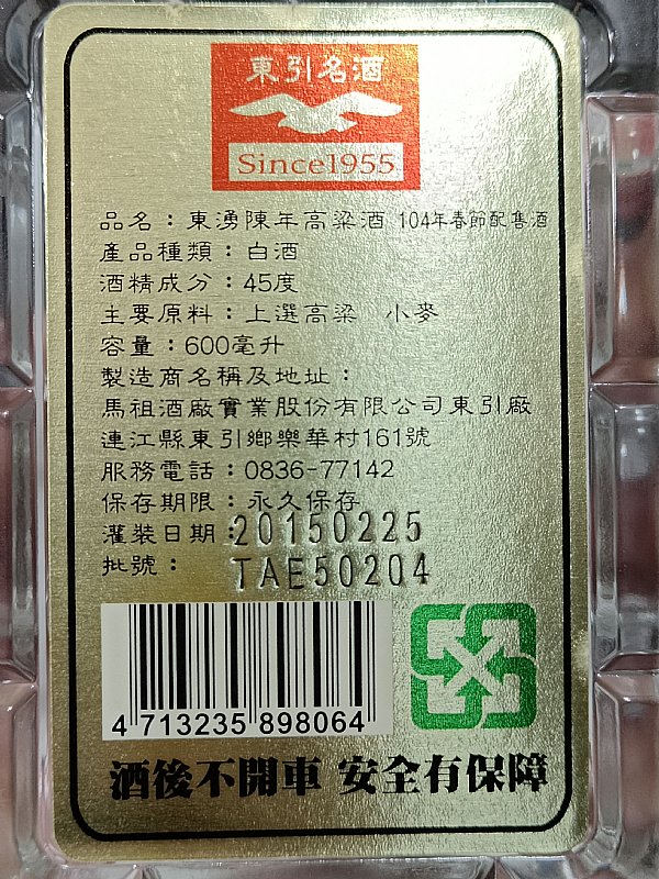 東湧陳年高粱酒104年春節配售酒×4
