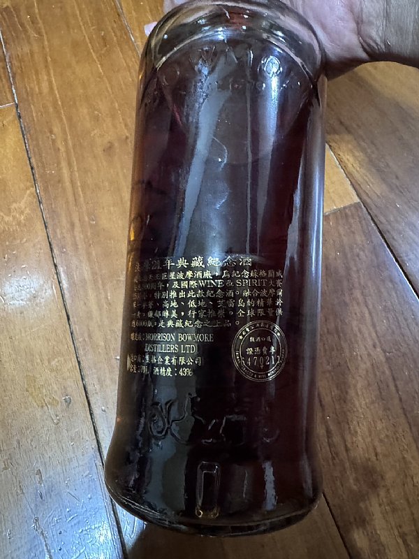 海鷗版老波摩21年,酒精度43%。還有公賣憑證