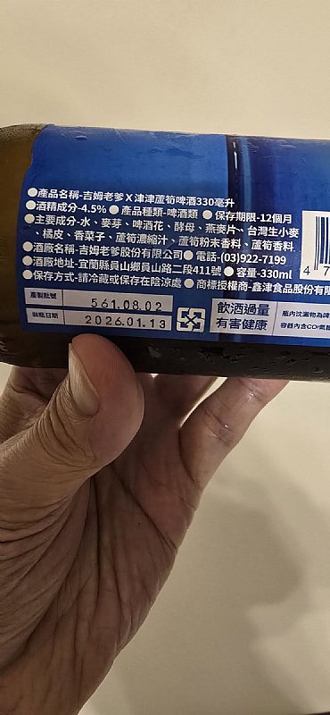 津津蘆筍啤酒,酒精度4.5%,鑫津公司委託宜蘭吉姆老爹工廠釀製。。