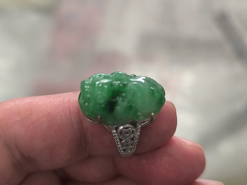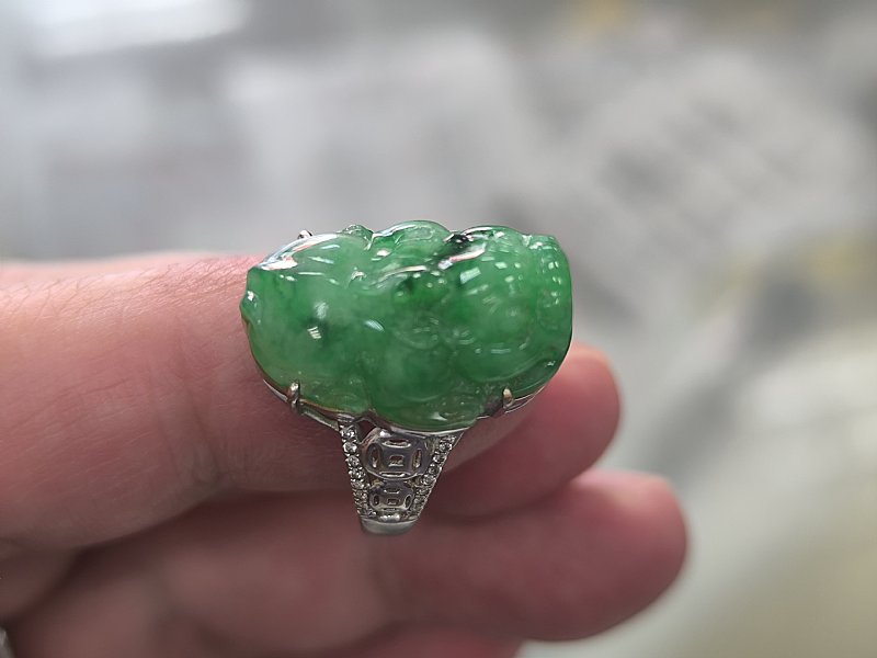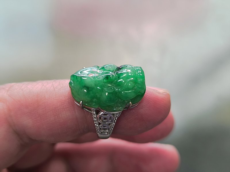 漂亮的翡翠 綠蛋男戒 綠貔貅戒