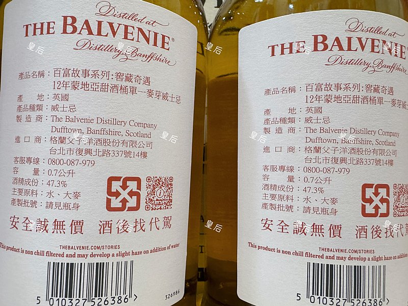 1.百富12年蒙地亞甜酒桶💢1600/b 有數瓶