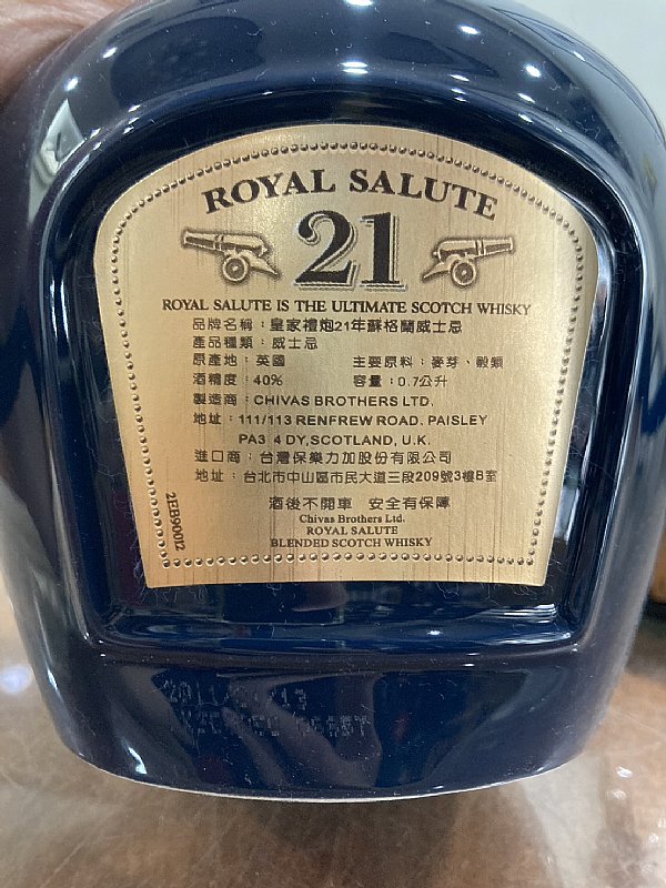 2.皇家禮炮21年禮盒,40%,700ml,未拆封,盒不美,品項如圖,跑2.4K