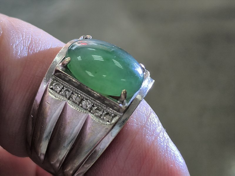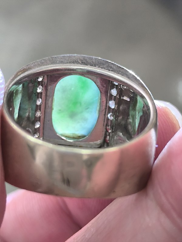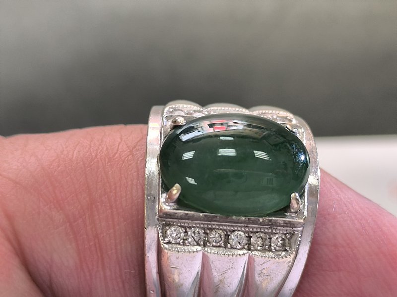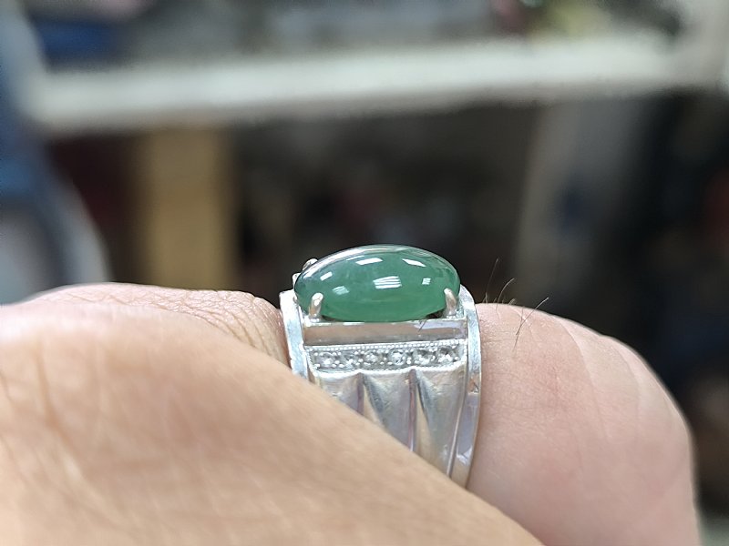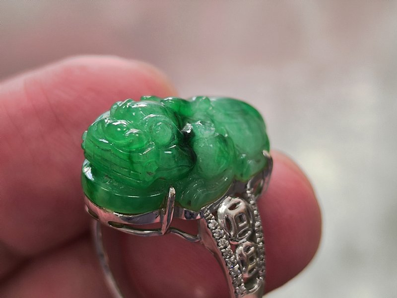 緬甸玉 綠翡翠貔貅戒 蛋面戒