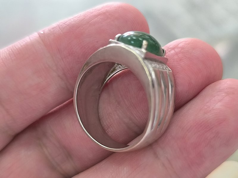 蛋面白k金男戒 戒面13x10x4.5mm