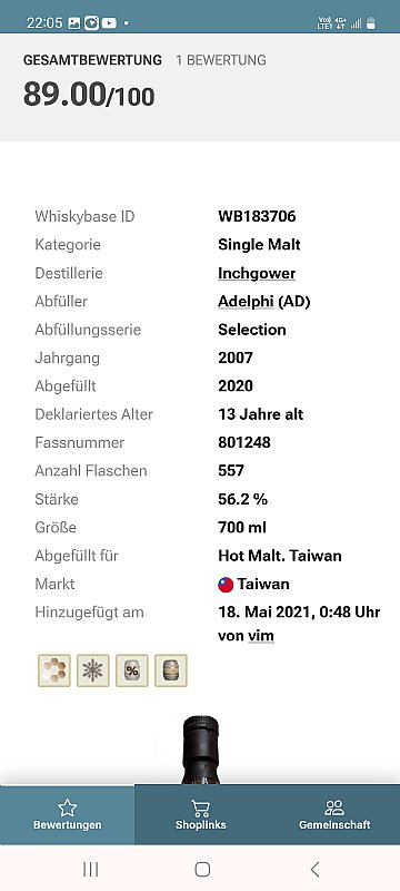 6年前英呎高爾2007/2020 13年雪莉單桶原酒 cask no#801248 56.2%