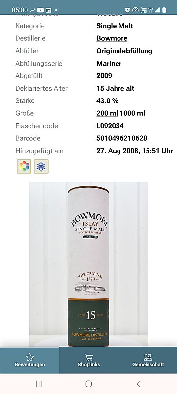 接近20年前絕版泥煤雪莉的波摩15年Mariner水手 1000ml 43%(老圓桶 在2005-2008時期發行)