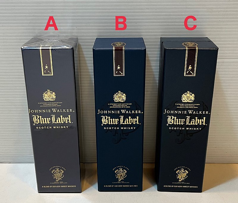 A瓶:盒裝完整原包裝未拆 B瓶:盒裝完整略有歲月痕跡 C瓶:盒裝老舊