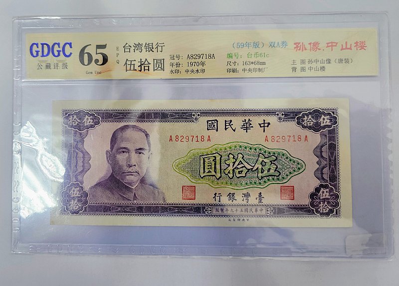 評級鈔 民國59年50元 公藏評級 65EPQ 無折