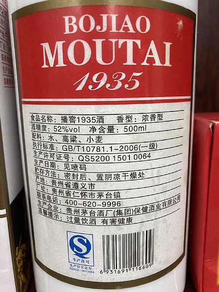 1.貴州茅台,播窖1935酒,2013年,52%,500ml,有盒,品項如圖,跑1.5K