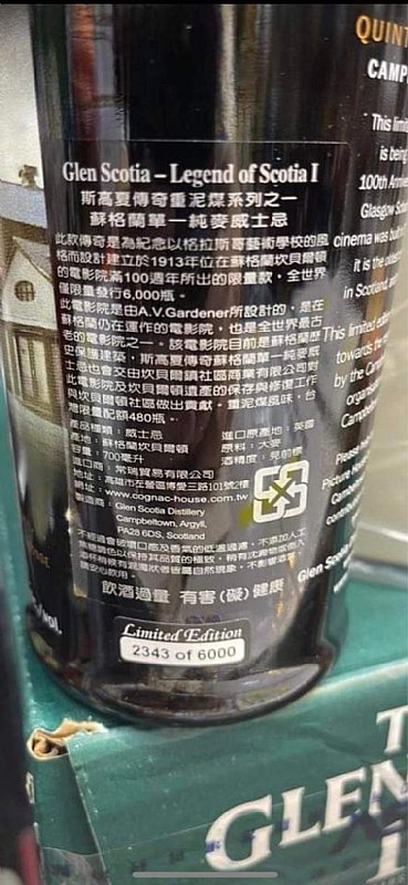 90年代蒸餾 2010年代的舊版 全世界6000瓶 老裝瓶 帶點海洋鹹感熱帶水果風味的坎培爾鎮原酒