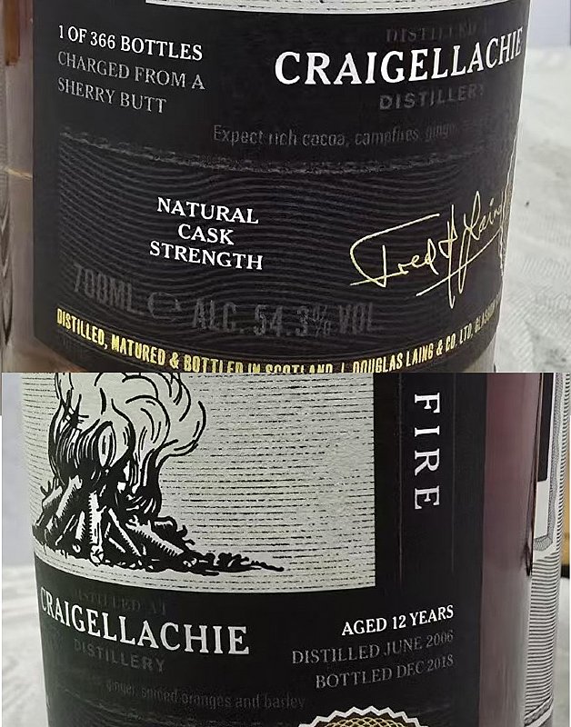 1、魁列奇Craigellachie 12年原酒,元素系列-火元素,54.3%/700ml/