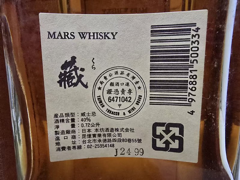 8、信州MARS藏調和威士忌(老公賣局章)Mars Kura Blended Whisky,40%/720ml,