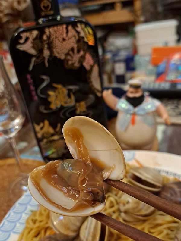搭的餐是出自個人手藝的香辣醃大蛤蜊涼麵。