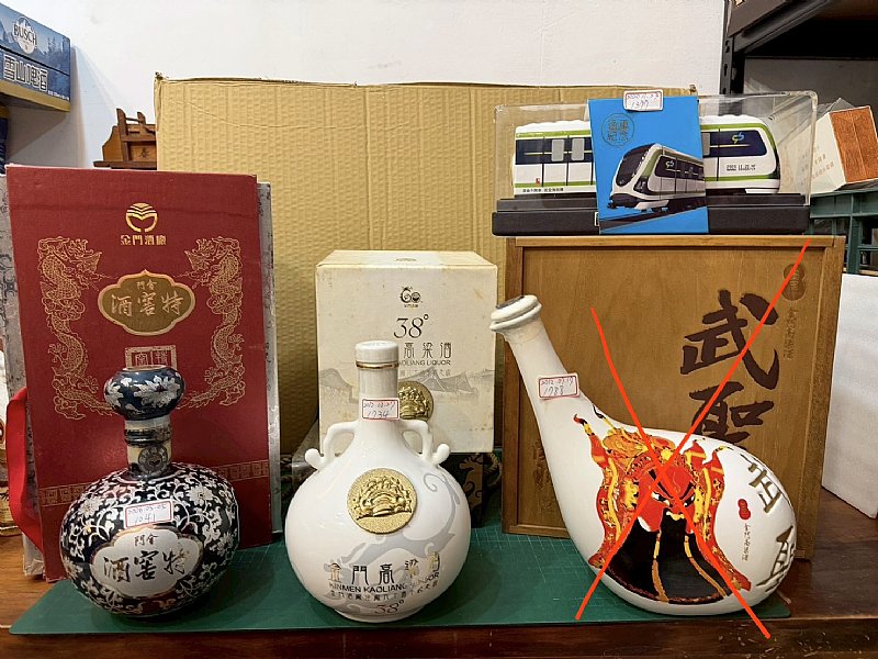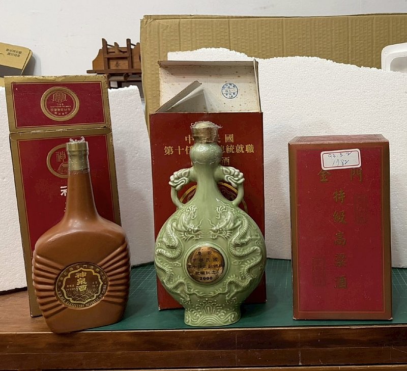 金門特窖酒2006.05.05頭酒漬 無酒味1041克跑3500公尺 建廠60週年紀念酒38%一公升1734克2012.10.27外盒不美跑1200公尺 台中捷運通車紀念1377克2020.11.23跑1400公尺