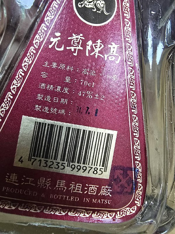 馬祖酒廠東湧陳高 台灣唯一鉑金獎