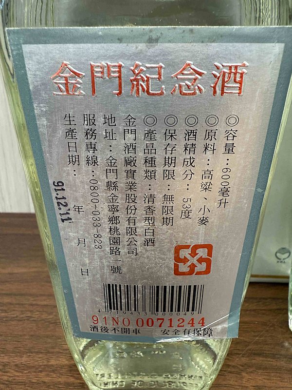 2.金門紀念酒 91.12.11+92.**.09 品項配件如圖、2位合跑3100M
