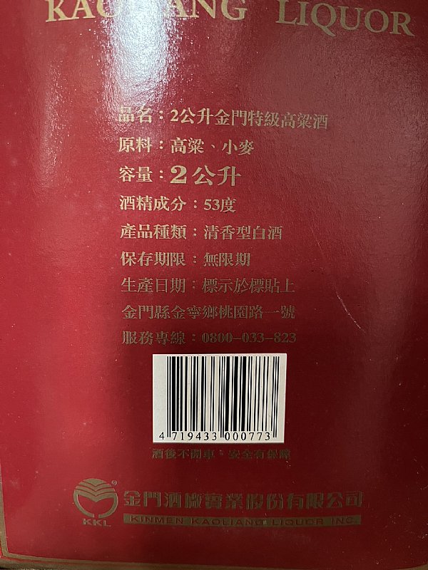討論主題:92年2公升特級高粱酒