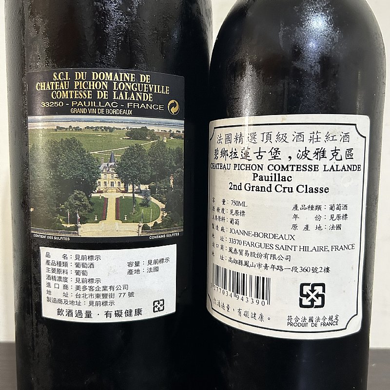 法國碧尚女爵堡 1992年份 1.5公升、1999年份 0.75公升