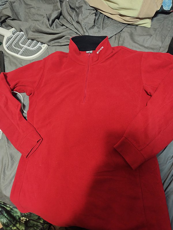 EiDER FROOUL 艾德 法國戶外登山休閒大牌 紅色透氣拉鍊半襟立領上衣 毛巾布保暖刷毛,電繡 logo 運動排汗衫 中層衣 m號,衣寬54衣長75 袖長58 跑500m 店到店50
