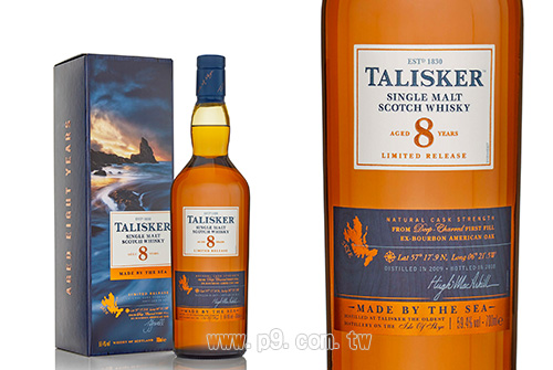原廠首度推出的原桶強度Talisker 8年威士忌,靈感來自30年前固定推出的產品,並熟成於經過重度炙燒處理的首次充填美國橡木波本桶。