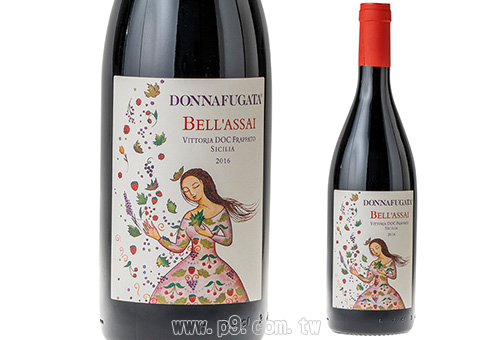 酒標上的女孩Bell’Assai象徵著吹拂葡萄園果實和鄉村氣息的西西里甜美微風。它也代表著Donnafugata這個極富創新精神、愛與美的家族對維多利亞(Victoria)這塊土地所注入的生氣。Donnafugata 藉由此充滿藝術氣息的酒標表達對此酒款的愛意與讚美。