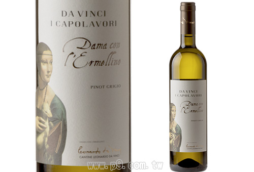 I Capolavori系列將義大利最著名的葡萄酒與Leonard Da Vinci 著名的畫作結合。是藝術與和頂級義大利品質的融合,展示Leonard Da Vinci 的獨特天賦,以及對他的致敬:一個穿越文化,科學和自然的非凡冒險。此酒標取材自Leonard Da Vinci 的名畫:《抱著銀貂的女子》。 達文西的名畫 Dama con L'Ermellino 《抱著銀貂的女子》優雅而神秘。這幅畫使得Cecilia Gallerani(塞西莉亞·加勒拉尼)永垂不朽,她是一位受過教育的Lombard(倫巴底)貴族,十六歲時就已經是米蘭公爵Ludovico il Moro Sforza的情人。在希臘語中,貂皮被稱為 galè,它在畫中的出現暗示了女孩的姓氏。 此外,1488 年,Ludovico本人從那不勒斯國王那裡獲得了白銀騎士團的騎士榮譽稱號。 這幅畫非常強調手的律動,用修長的手指撫摸動物,強調優雅和純潔,而女人的嘴唇上掛著難以察覺的微笑:可以在達文西的另一幅名畫《Mona Lisa 蒙娜麗莎》中看到類似的笑容。