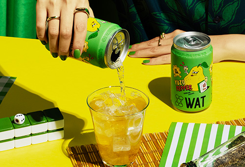 一向在設計上獨創一格的WAT,這次外包裝設計以俏皮可愛的柚子插圖,手上拿著台灣國粹-麻將,以諧音梗「柚胡了」,俏皮的名字加上微醺的酒精,好喝又好玩,讓它不僅僅是一杯普通的雞尾酒,也讓你的味蕾在其中盡情嬉戲。