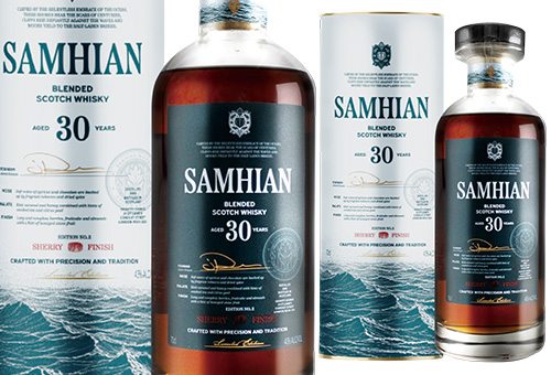 Samhian麥靈堡®30年Oloroso雪莉桶蘇格蘭調和威士忌是一款歷經30年橡木桶熟成,並以Oloroso雪莉桶精心收尾的卓越蘇格蘭調和威士忌。其深沉酒液蘊含豐富層次,焦糖的醇厚甜香與成熟莓果、濃郁巧克力氣息交織,伴隨雪莉酒的優雅芬芳,勾勒出細膩而和諧的香氣。