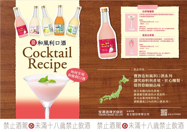 果汁使用的靜岡的鈴岡才有的白草莓品種「初戀之香」,是世界上最早亮相的白草莓品牌,成熟後會保持純白色澤。除了酸甜可人的風味外,由於日本當地產量稀少,因此被認為是高貴品種而受到歡迎。基底使用寶酒造自豪的「木樽熟成燒酎」,其奧妙在於使用 20多種不同熟成年限的桶陳燒酎,並以經年細膩打磨才得到的精妙比例調和而成,酒質圓潤柔和卻又讓人感到深邃,沒有燒酎普遍讓人不易接受的原料粗曠風味。