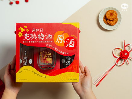 月桂冠完熟梅酒原酒450ml(19%)兩入禮盒、月桂冠清酒720ml(13%)兩入不倒翁紀念禮盒:全聯通路限量販售