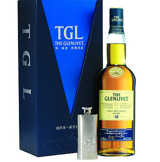 TGL18年單一純麥威士忌濃郁的蜂蜜味和絲絨般的獨特口感呈現陳年熟成的優雅;仿古的瓶身訴說著TGL極具歷史的尊貴血統,為蘇格蘭單一純麥威士忌的唯一代名詞。今年更榮獲2007年國際烈酒競賽金獎殊榮,顯見其酒質精純。TGL 18年春節禮盒以TGL最經典的海軍藍搭配天空藍畫龍點睛般的V字設計,呈現出內斂經典的不凡氣息。獨家贈送的精緻酒壺,以TGL格蘭利威於正式獲得合法釀酒執照的1824年標誌作為設計,就是要您牢牢記住,唯有TGL格蘭利威,才是血統最純正的單一純麥威士忌。